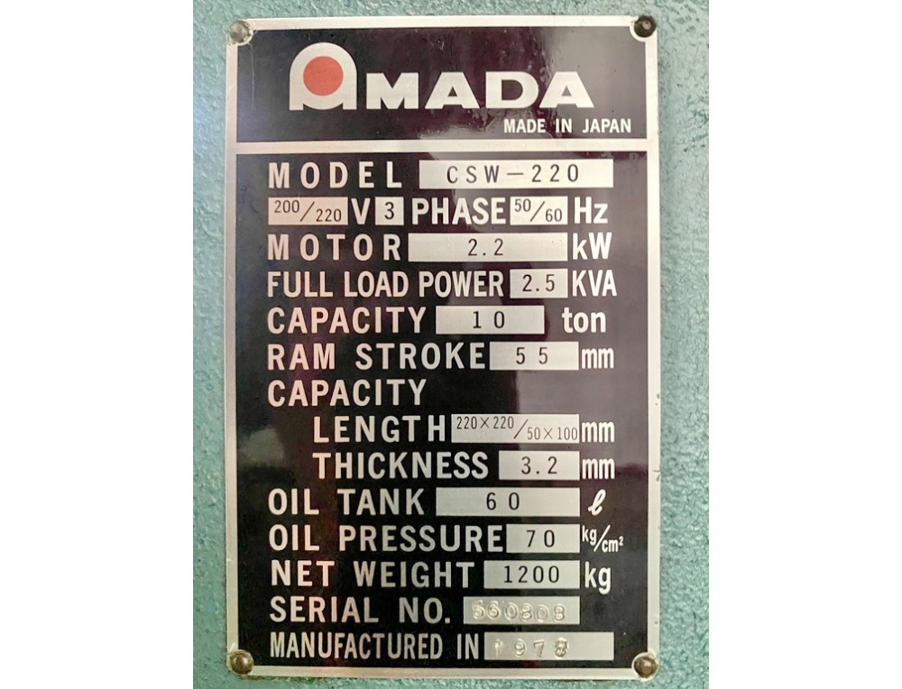 ขายเครื่องบากมุม AMADA CSW-220 เครื่องนำเข้า แบบสองหัว ตัดหนา 3.2มม. ราคา 129,000บาท