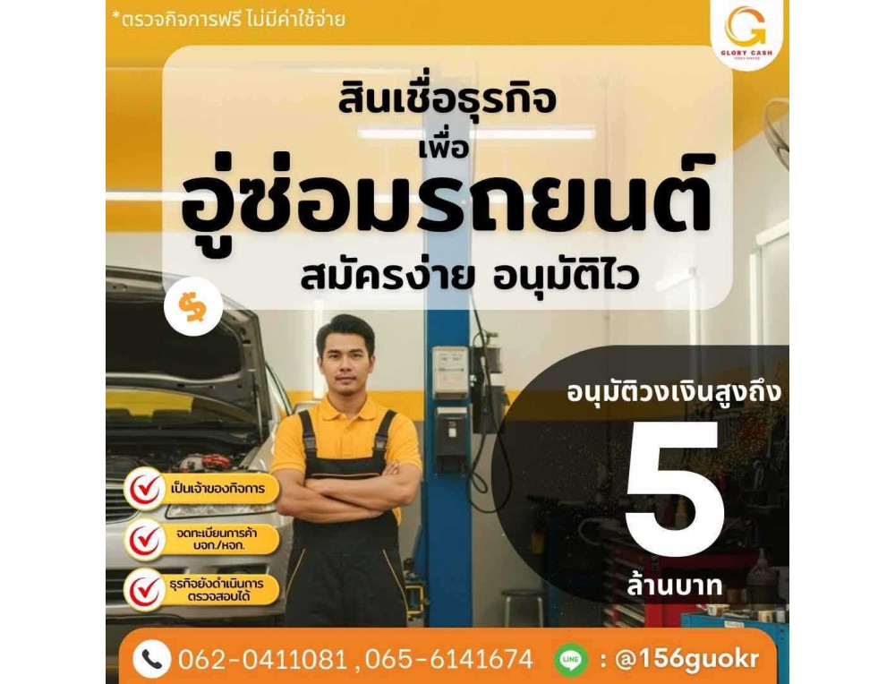 บริษัท Glory cash ช่วยคุณได้ โรงงาน อุตสาหกรรมขยายการผลิต แม่ค้าออนไลน์ ผู้รับเหมา นำเข้า-ส่งออก บจก/หจก ผู้ค้า/ผู้จำหน่าย ธุรกิจทุกขนาด