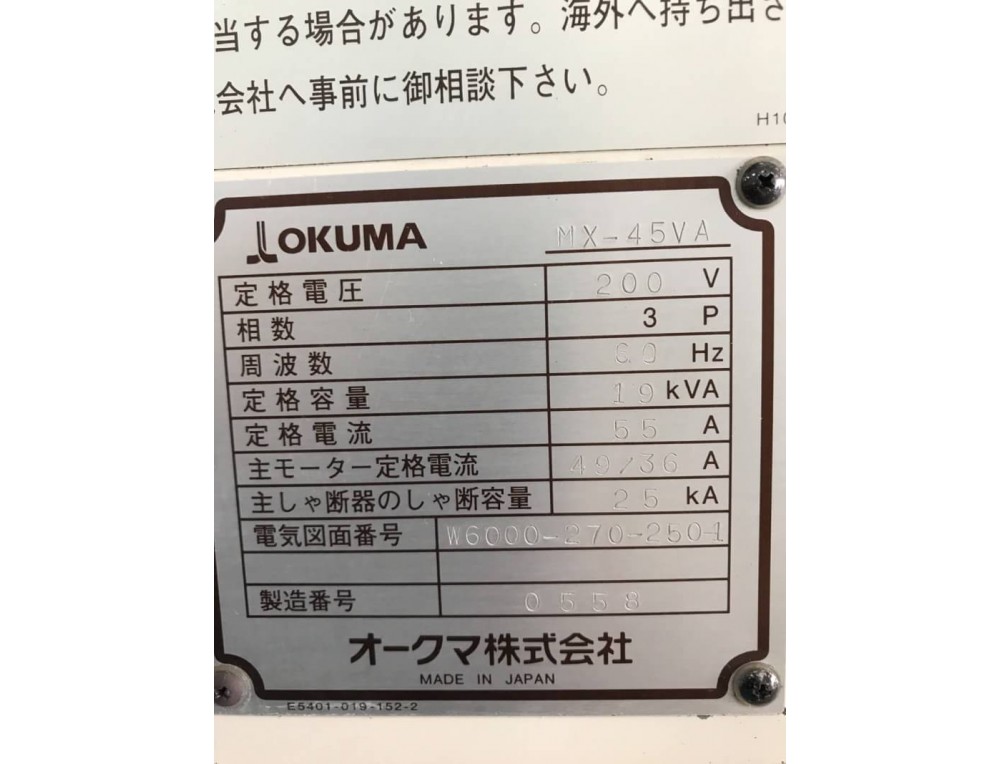 "Okuma" Machining Center MX-45VA Year 1996 Controller : OSP700M Table Size : 760 mm x 460mm Stroke : X560mm Y460mm Z450mm BT-40 20-ATC 50-7,000rpm Weight 6.7Tons (โทร) 0827867706 (line) yoye529