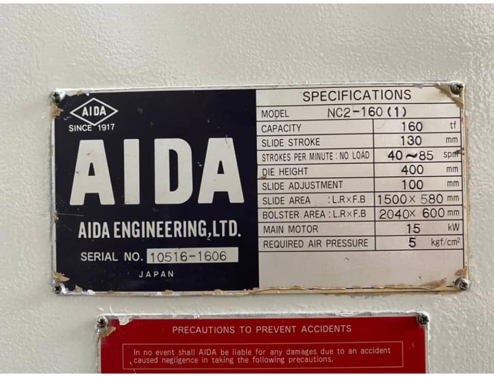 เครื่องปั๊ม 160 ตัน เครื่องเพลสมือสอง 160 ตัน Aida nc2