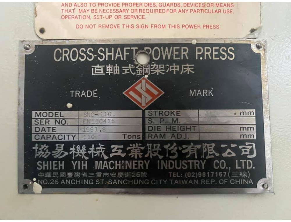 ขายเครื่อง ปั้ม ยี่ห้อ Sheiyih รุ่น SNC -110 ขนาด110 ตัน