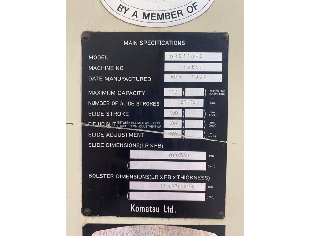 เครื่องปั๊ม 110ตัน KOMATSWU OBS-110 TON พร้อมใช้งาน