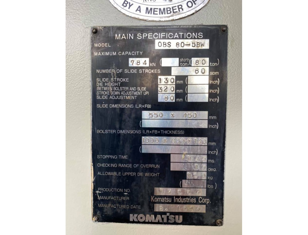 เครื่องปั๊ม KOMATSU 80 TON รุ่น OBS-80