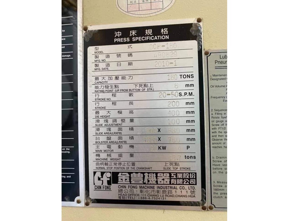 เครื่องปั้ม CHIN FONG 160 ton ปี 2010