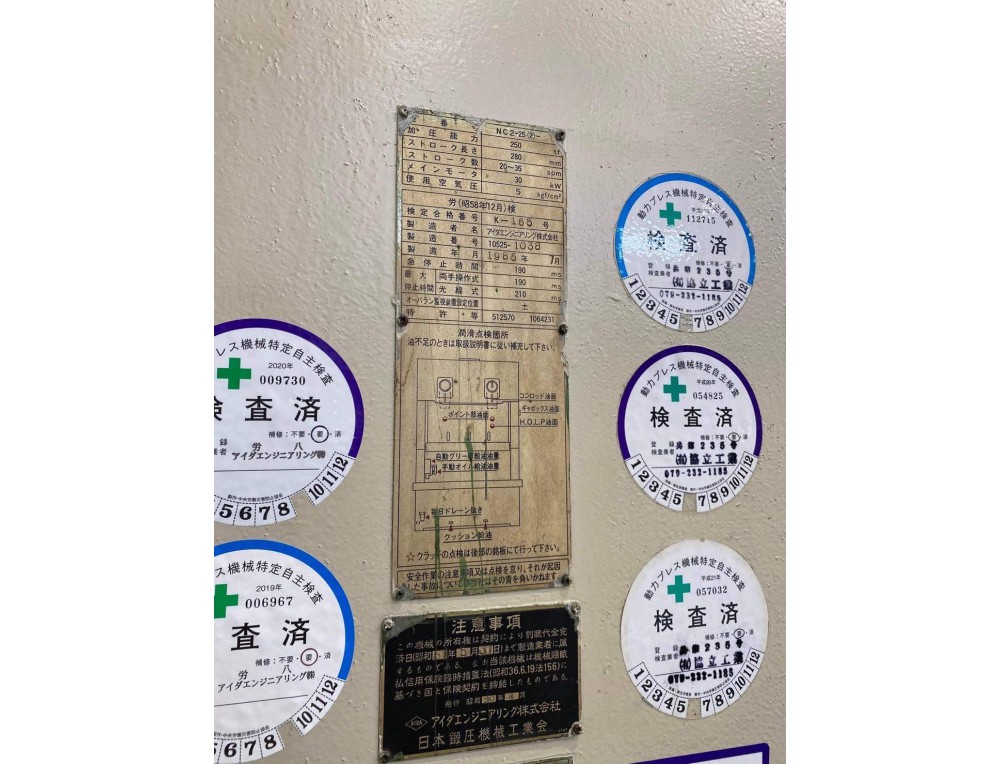 เครื่องปั๊ม Aida NC-2 250 ตัน เครื่องปั๊มมือสองนำเข้าญี่ปุ่น