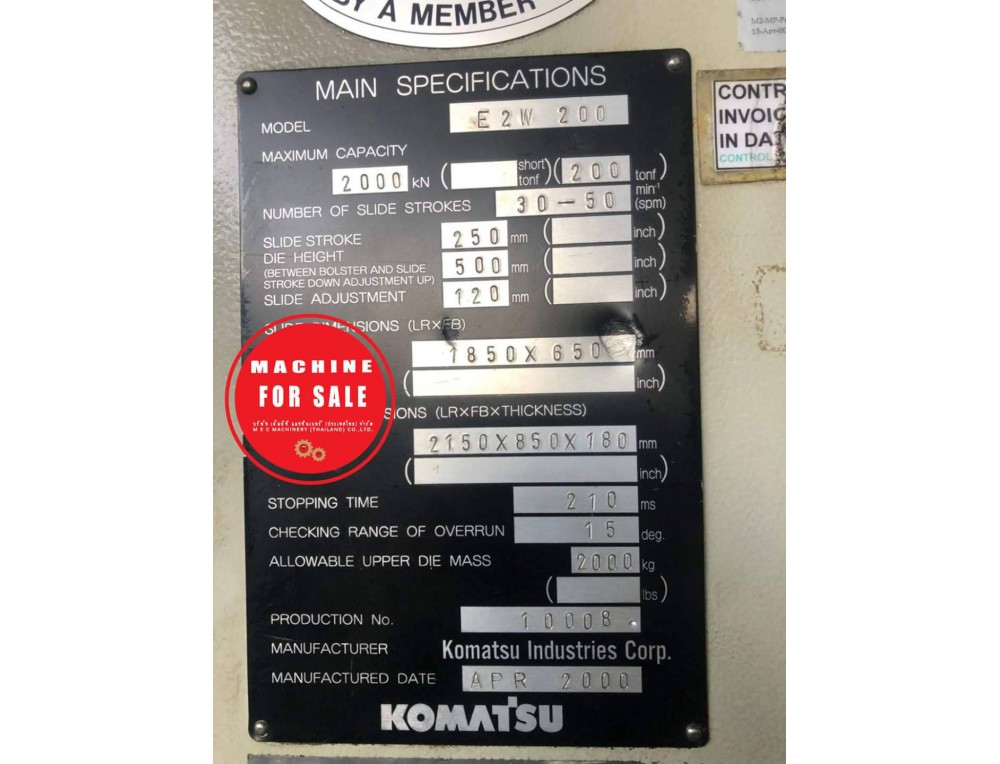 #ขายเครื่องปั้ม E2W 200 ตัน KOMATSU ปี 2000 สนใจเข้ามาดูเครื่องได้ที่ MEC SHOP