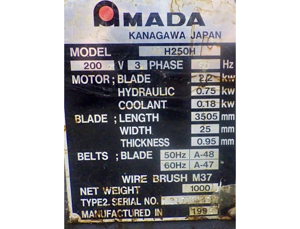 ขายเครื่องเลื่อยสายพาน AMADA H-250H เครื่องนำเข้า ตัดโต 250mm. ราคา 125,000 บาท