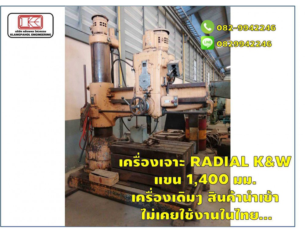 เครื่องเจาะ RADIAL K&W แขน 1,400 มม. เครื่องเดิมๆ สินค้านำเข้า ไม่เคยใช้งานในไทย... ชมเครื่องจักร โฟล์คลิฟท์ รอก นับ1,000รายการจากญี่ปุ่นwww.paholgroup.com