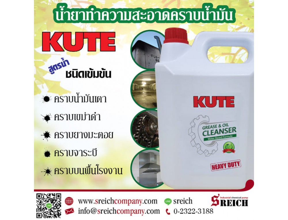 KUTE น้ำยาทำความสะอาดคราบน้ำมัน ล้างคราบไขมัน สูตรน้ำ ชนิดเข้มข้น