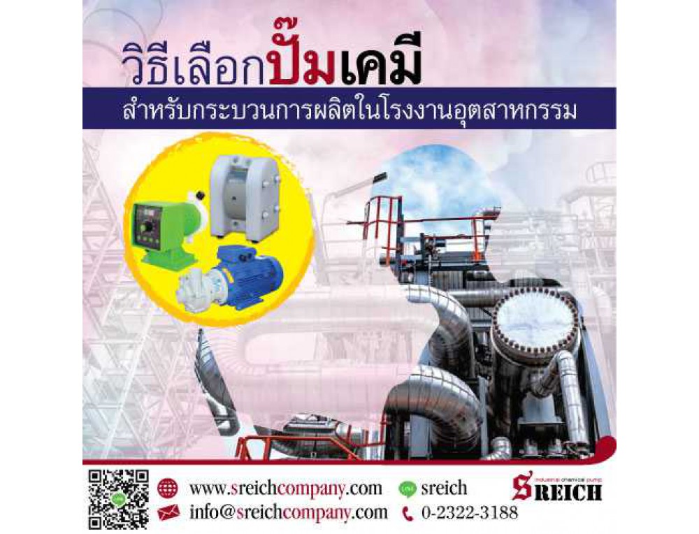 ในกระบวนการขนถ่าย ของเหลว ของหนืด สารเคมีกรด-ด่าง สารละลาย ที่มีความเข้มข้นต่างกัน จำเป็นต้องเลือกปั๊มที่เหมาะสมกับงานเพื่อไม่ให้เกิดความผิดพลาดในการสูบจ่ายของเหลว และช่วยส่งผลให้อายุการใช้งานของปั๊มยืนยาว ไม่รั่วซึม เพราะใช้วัสดุปั๊มที่เหมาะสม ช่วยให้ประหยัดค่าบำรุงรักษา ทำให้งานของคุณเป็นไปอย่างราบรื่นและปลอดภัย สนใจปั๊มอุตสาหกรรม ปั๊มเคมี, ปั๊มโดส, ปั๊มไดอะแฟรม, ปั๊มหอยโข่ง, ปั๊มจุ่ม, ปั๊มบำบัดน้ำเสีย, ปั๊มติ๊ก,ปั๊มฟู้ดเกรด ติดต่อเรา บจก. เอส ไรคส์ โทร 02-3223188        ไลน์ไอดี sreich