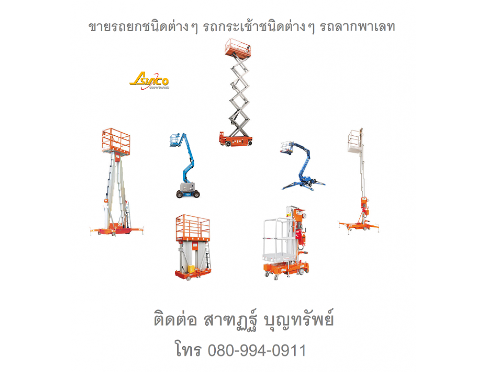 รถกระเช้า รถกระเช้าไฟฟ้า รถยก รถยกไฟฟ้า โฟร์คลิฟท์ Forklift มือหนึ่งและมือสอง รถกระเช้าบูม รถกระเช้าไฟฟ้า รถยกขากรรไกร รถยกสินค้า รถยกพาเลท รถลากพาเรท รถกระเช้า กระเช้าทำงานที่สูง โต๊ะปรับระดับ ทุกชนิด พร้อมจัดส่งและบริการซ่อมให้คุณได้ทั่วประเทศ