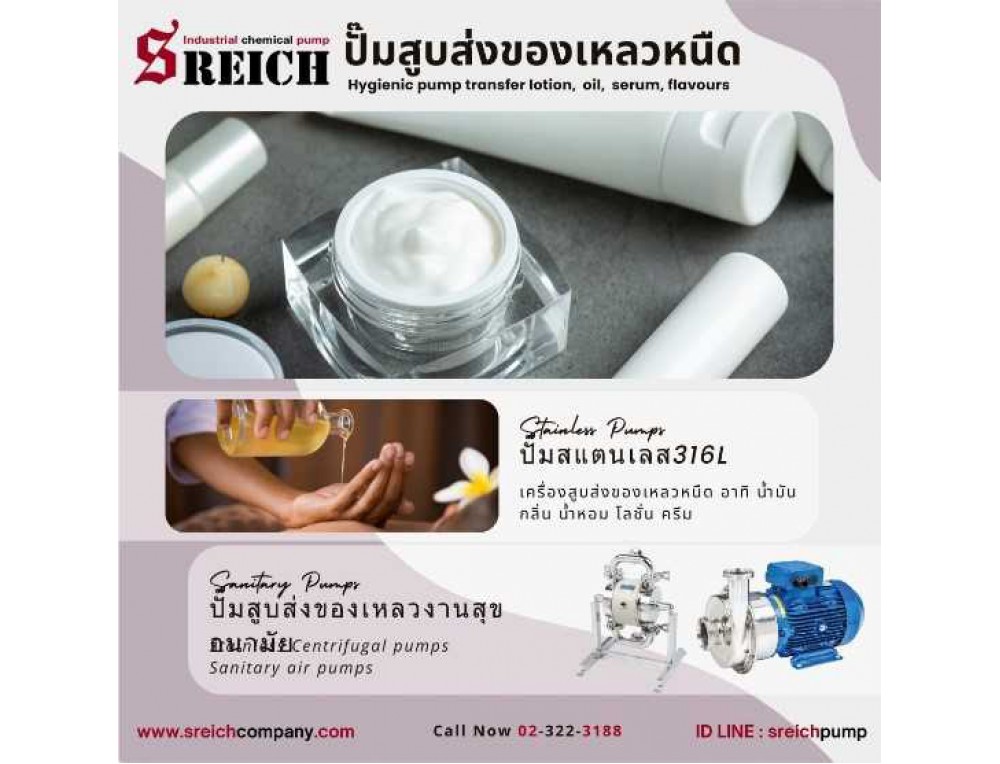 อุตสาหกรรมงานผลิตเวชสำอางค์ เน้นความสะอาดเป็นหลัก การขนถ่ายส่วนผสม ครีม น้ำหอม โลชั่น ควรใช้ปั๊มมาตรฐาน EHEDG ที่ได้รับการออกแบบให้ถูกสุขอนามัย วัสดุต่างๆ ได้รับการรับรองตามมาตรฐานองค์การอาหารและยา (FDA) ปั๊มผลิตด้วยวัสดุ สแตนเลส สตีล 316L ผิวขัดเรียบ มีส่วนประกอบน้อยชิ้น ไม่ต้องใช้สารหล่อลื่น ไม่มีซีลเพลา ไม่ต้องล่อน้ำ ดูแลรักษาง่าย ปั๊มขับเคลื่อนด้วยลม https://youtu.be/xIyApg2hYQc?si=IVSPXN3E61F-EyGy