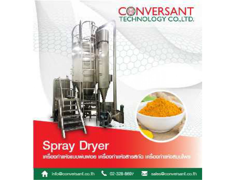 เครื่องทำแห้งแบบพ่นฝอย สำหรับทำแห้งสารสกัดสมุนไพร เช่น ขมิ้นพญายอ และผลิตภัณฑ์อาหาร เช่น ชา ครีมเทียม ด้วยความร้อน สามารถออกแบบให้เหมาะสมกับแต่ละประเภทของผลิตภัณฑ์ได้และรุ่นพิเศษสามารถทำการทำแห้งสารสกัดที่สกัดด้วยตัวทำละลายประเภทออร์แกนิคส์โซลเว้นได้ หรือผลิตภัณฑ์ที่มีความหวานสูง เหมาะกับสารสกัดสมุนไพรมีขนาดตั้งแต่อัตราการระเหยแห้ง (Evaporation rate) 5 ลิตร/ชั่วโมง ไปถึง 500 ลิตร/ชั่วโมง