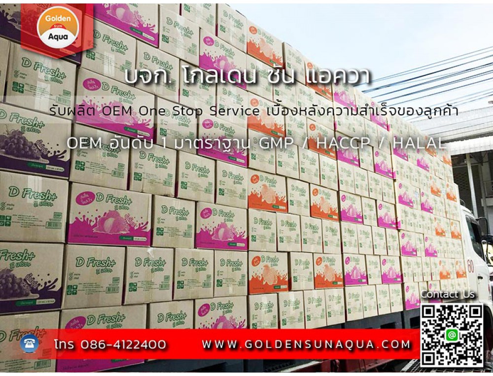 ทั้งนี้บริษัทฯ มุ่งมั่นที่จะพัฒนาผลิตภัณฑ์ ใหม่ที่มีคุณภาพ และรสชาติ เป็นที่ต้องการออกสู่ตลาดอย่างต่อเนื่อง และยังเป็นศูนย์พัฒนาผลิตภัณฑ์เครื่องดื่ม แบบครบวงจร (One Stop Service) สำหรับผู้ที่ต้องการเริ่มต้นมีแบรนด์เครื่องดื่มเป็นของตัวเองเพื่อจัดจำหน่าย โดยมีทีมวิจัยและพัฒนาผลิตภัณฑ์ที่มีความชำนาญภายใต้กระบวนการผลิตที่ได้รับมาตรฐาน GMP และ HACCP Golden Sun Aqua Co., Ltd. We have been producing the freshest juice for almost 20 years. In 2006 Ms. Duangporn D. set up “Shogu” juice Brand. Now we can supply a rapidly expanding market for our “Shogu” Brand and for under customers’ brand name.
