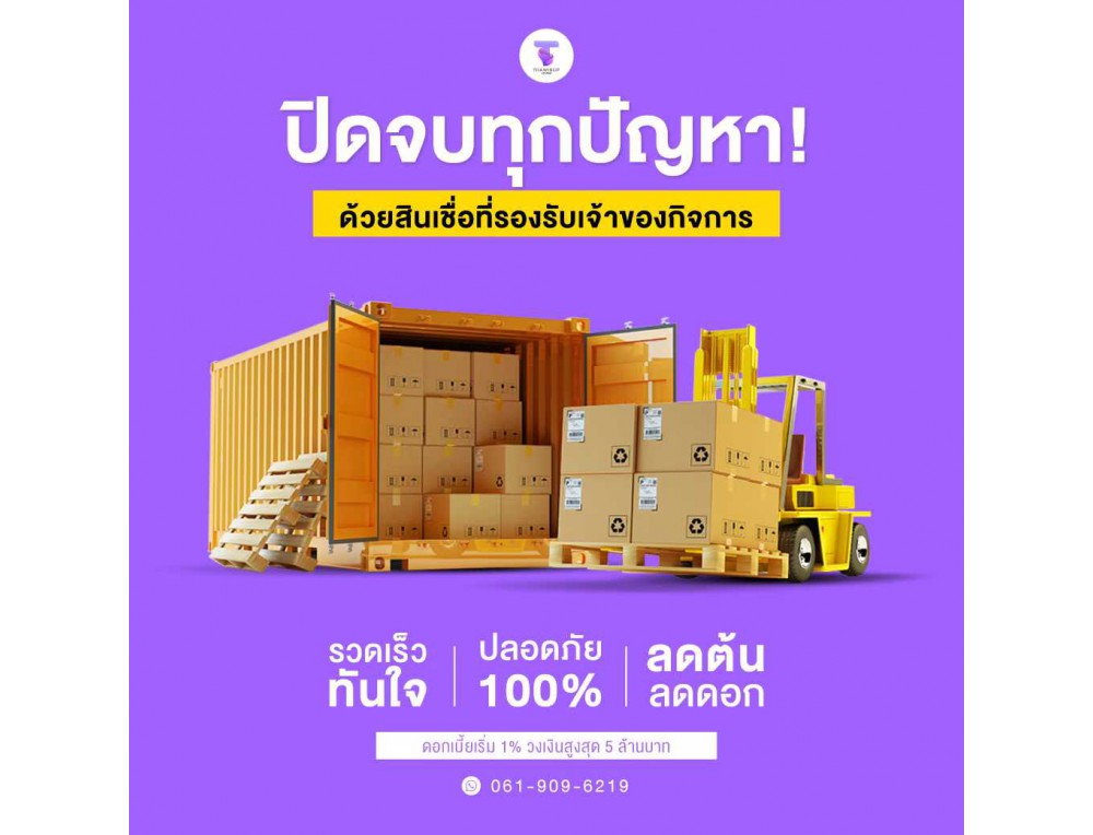 สินเชื่อผู้รับเหมา นำเข้า-ส่งออก ขนส่งสินค้า แม่ค้าออนไลน์ บจก/หจก ผู้ค้า/ผู้จำหน่าย ธุรกิจทุกขนาด มากกว่า 100 กิจการทั่วพื้นที่ กรุงเทพฯ ปริมณฑล ภาคตะวันออก
